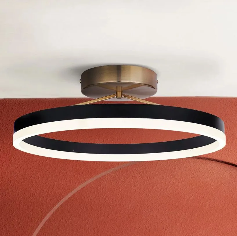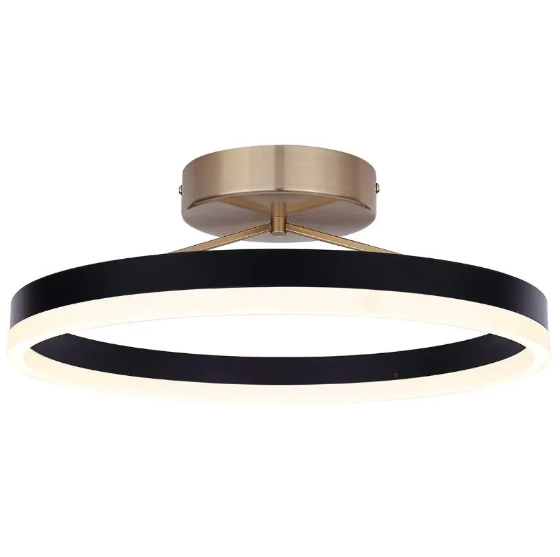 The LOUIE flush mount blends modern luxury with bold, contemporary edge. Its matte black and gold finish recalls clean Mid-Century lines, while the sculptural silhouette hints at the playful spirit of ’80s design and Y2K-inspired metallics. With a frosted acrylic diffuser, it softens the output of its 24W integrated LED, delivering 1200 lumens of balanced light that feels both refined and immersive. A 3CCT switch offers flexible control (warm 3000K, balanced 4000K, or crisp 5000K illumination) while dimmable capability allows the fixture to shift seamlessly from vibrant brightness to soft ambience. At 15.62 inches wide, LOUIE anchors a room with confidence, designed to feel as striking in real life as it does on screen.