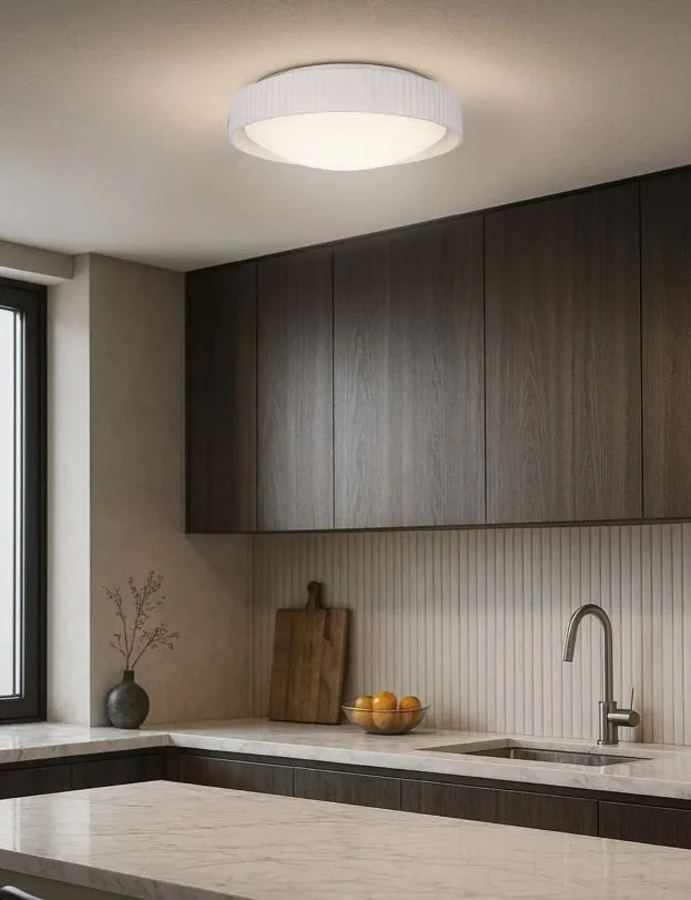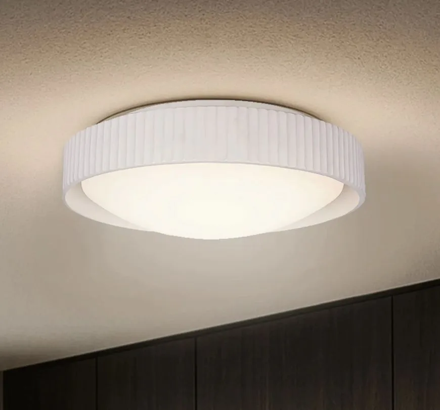 The HARVEY flush mount embodies modern serenity with its wide ribbed resin shade and smooth acrylic diffuser. At 17.37 inches across with a low 4.5-inch profile, it offers a sleek presence that feels both calming and contemporary. Designed to bring balance to everyday spaces, its subtle texture and clean form create a soothing layer of light that complements mindful, wellness-driven interiors. A 25W integrated LED delivers 1600 lumens of soft, even illumination, with a 3CCT switch to adjust between warm 3000K, neutral 4000K, or crisp 5000K tones. Dimmable functionality allows HARVEY to shift seamlessly from bright clarity to gentle ambience. Simple, sculptural, and quietly refined, this flush mount elevates bedrooms, entryways, and living spaces with intentional ease.