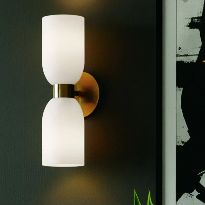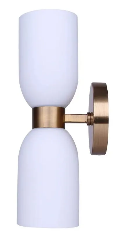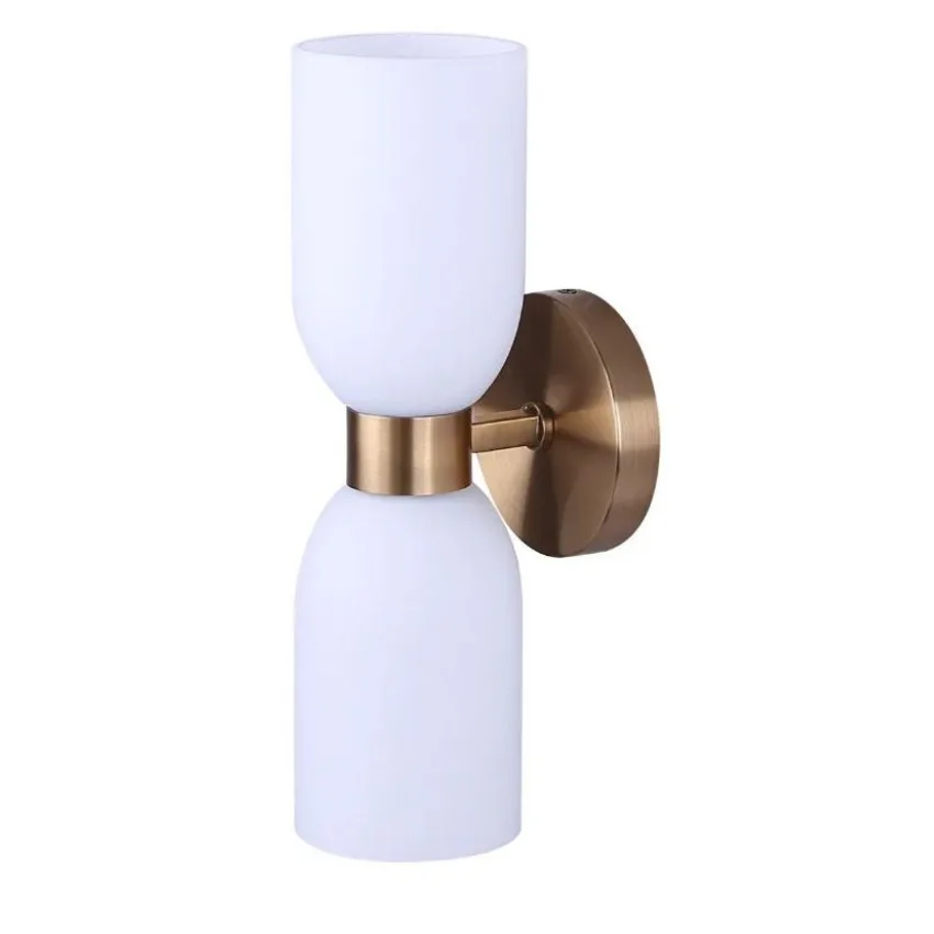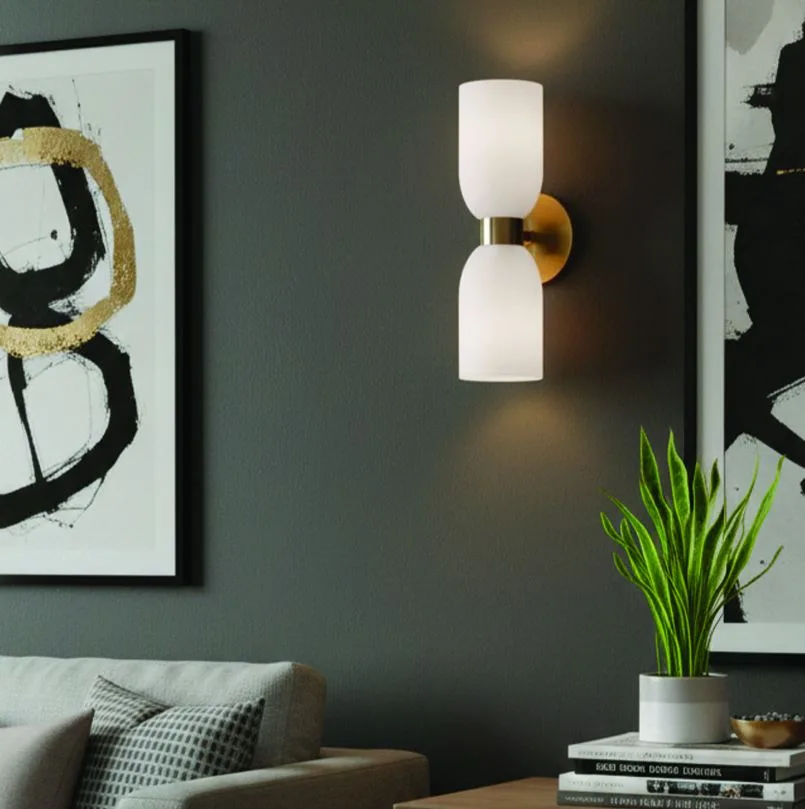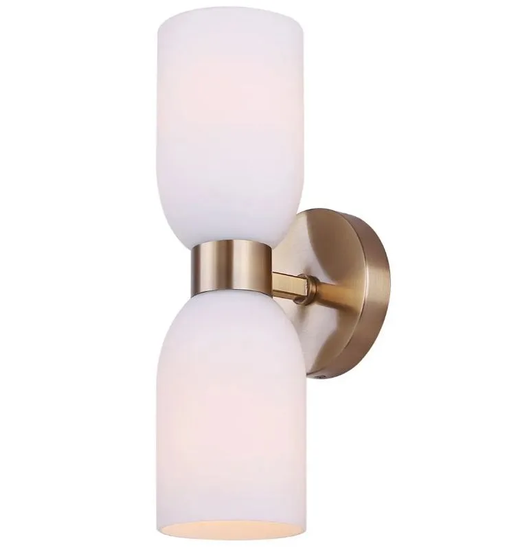 The DARIUS 2-light wall fixture in a warm gold finish blends practical functionality with understated elegance. Its flat opal glass shades diffuse light softly, creating a flattering glow ideal for bedrooms, living areas, or as vanity lighting beside mirrors. Designed for up/down illumination, this compact fixture offers both ambient and accent lighting while maintaining a low-profile presence. At 4.75″ W x 13.5″ H x 5.5″ D, DARIUS is perfectly scaled for versatile placement in modern and transitional interiors. Easy Connect technology allows for fast, hassle-free installation, making it a practical choice for builders and homeowners alike. With a timeless silhouette and balanced illumination, DARIUS elevates everyday spaces with subtle, refined style.