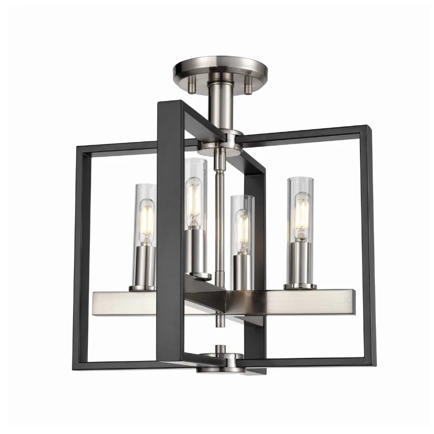 DVI’s Blairmore collection embraces mid-century shapes but offers incredible variance in presentation depending on finish. The sharp angled metal rods create an open box feel, both modern and rustic at the same time.