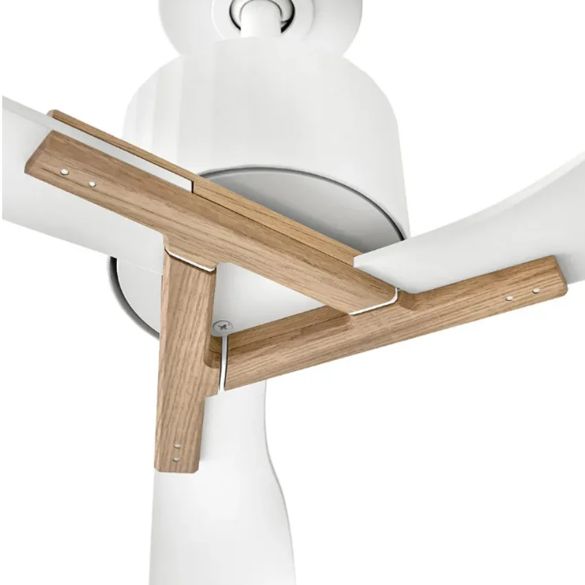 Inspired by the organic minimalism of modern Scandinavian styles, Rafter’s streamlined design adds warmth to your living space with wooden accents at the base of stylishly contoured blades. Indirect LED uplighting casts an inviting glow throughout the surrounding area. Equipped with a 6-speed DC motor that is WiFi enabled and ready to connect right out of the box. Operated by the HIRO control and WiFi compatible with the Hinkley App.