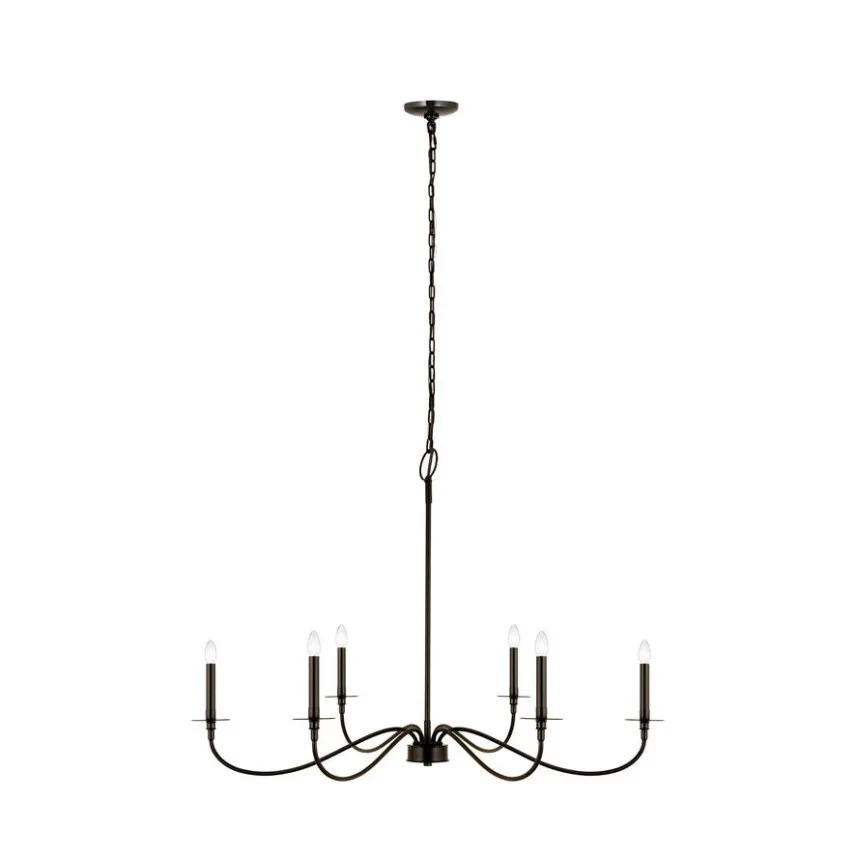 Bring romance to a modern or traditional kitchen, dining area, or main living space with this six-light chandelier from the Arrington collection. Crafted of bold matte black finish steel, its long, flared arms create a careful arrangement for placement of candelabra-style bulbs that borrow from a traditional motif.