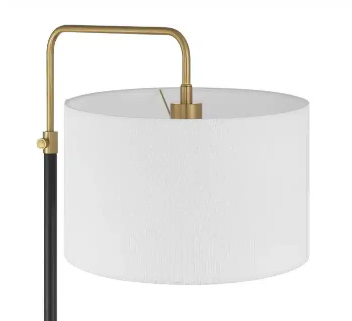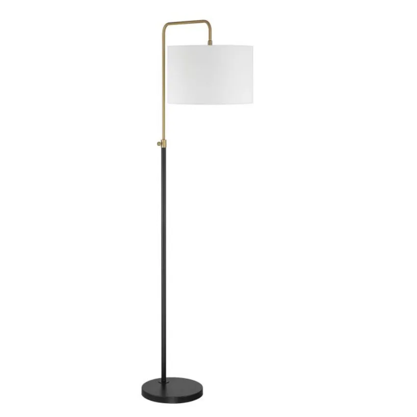 This stunning floor lamp is the perfect finishing touch for any room. The adjustable height Ingraham Floor Lamp is finished in flat black with satin brass and features a large hardback drum shade and weighted base. Requires a single medium-base bulb, with a maximum wattage of 60W (bulb not included).
