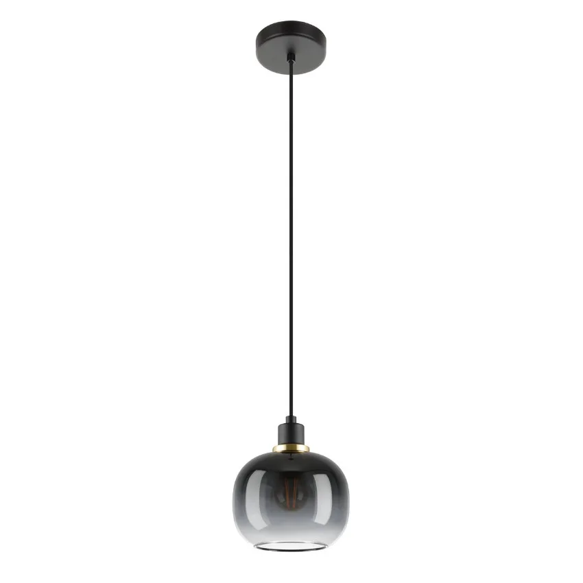 The OILELLA pendant light features a sleek and modern silhouette with a smoked glass shade in black-grey tones and a metal finish in black and brass. Its refined style is perfect for contemporary interiors, hanging above kitchen islands, dining tables, or entryways.