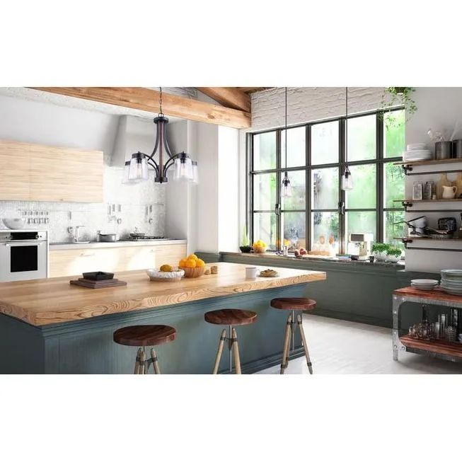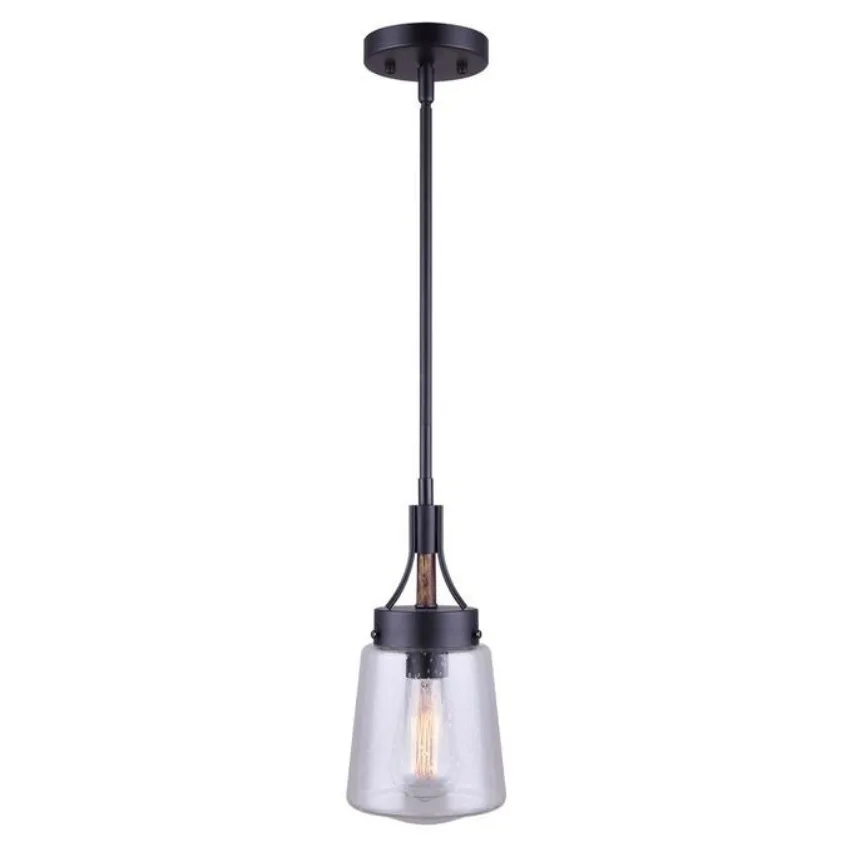 The Riva pendant by Canarm blends matte black with a warm faux wood accent for a look that feels both modern and natural. Its metal shade directs light downward, providing functional illumination ideal above kitchen islands, counters, or dining tables. Versatile in style, it complements Scandinavian, industrial, and contemporary interiors alike.
