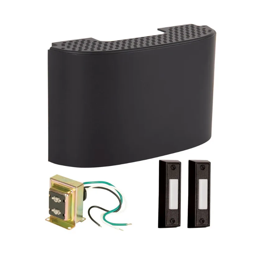 CK2001-FB Flat Black Chime Kit with 1 chime, 2 black buttons, 1 T1610 10 Watt transformer included, Contemporary
