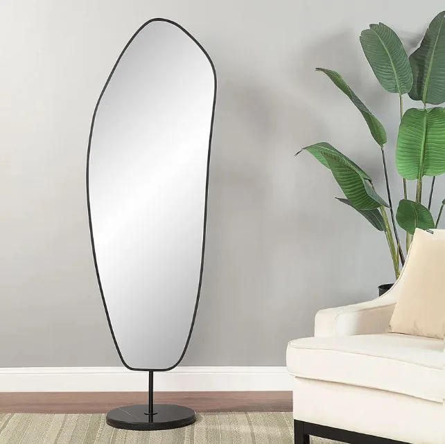 Transform any living space with the sleek and modern Arlon 70 Tall Irregular Mirror in Matte Black. The high-quality and durable cast iron frame ensures that this mirror will stand the test of time, while its unique abstract shape adds intrigue and flair to any room. This luxurious mirror features a sophisticated and sleek design that speaks to your aesthetic taste. The use of matte black finishing adds a touch of elegance to this already impressive item. Designed for easy installation and vertical hanging, the Arlon 70 is optimized for effortless display. Elevate your home decor with this eye-catching and functional piece.