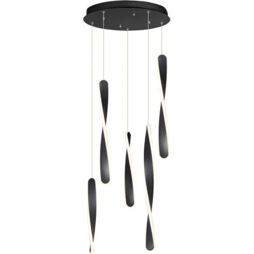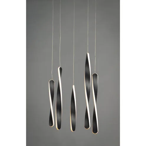 This striking multi-light pendant showcases a sculptural and contemporary design with slender, elongated elements suspended at staggered heights. Finished in matte black, each organic, blade-like form integrates a soft LED light source that creates a warm, ambient glow. The cascading arrangement adds movement and visual interest, making this fixture a true statement piece. Ideal for stairwells, foyers, or open living spaces, it blends modern artistry with functional illumination.