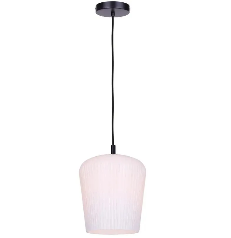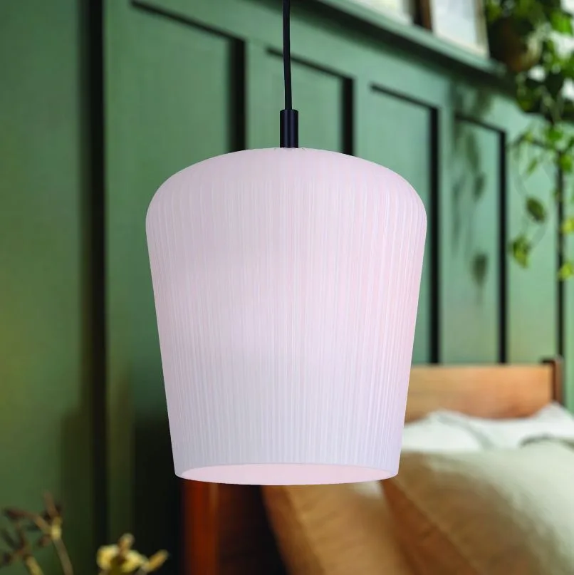 The LEANDRO 1-light cord pendant in matte black brings a clean, grounded look to your space. Its ribbed opal glass shade adds depth and texture, conveying a quiet elegance that complements modern homes.
