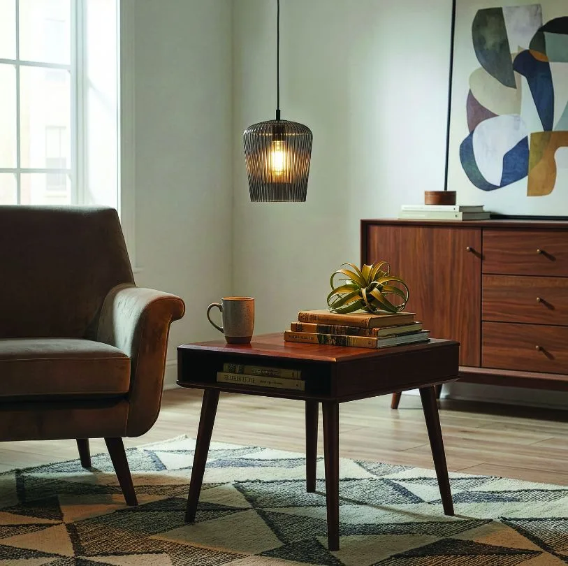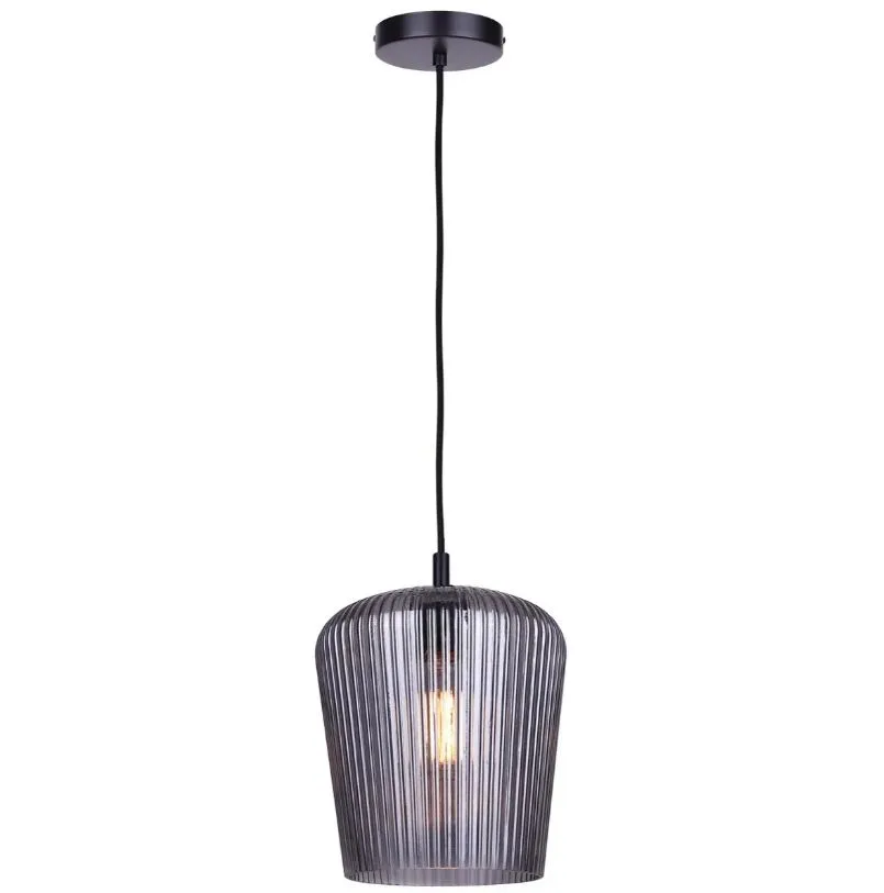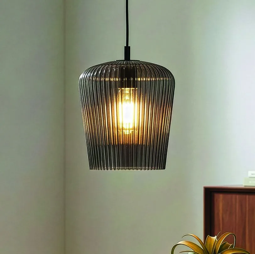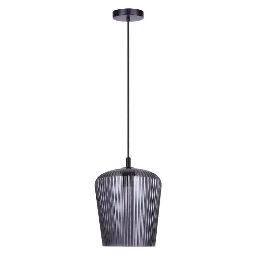 he LEANDRO 1-light corded pendant in matte black offers a clean, grounded look for your space. Its ribbed smoked glass shade adds depth and texture, creating a subtle elegance that seamlessly fits into modern homes.
