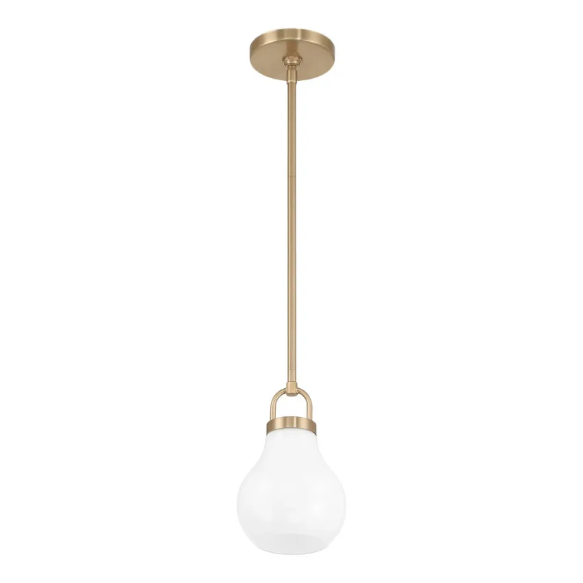 The Mansfield pendant captures effortless sophistication with its graceful balance of form and finish. A softly tapered opal glass shade glows warmly beneath a champagne gold frame, accentuated by the collection’s signature oversized decorative loop. Blending modern refinement with classic warmth, this pendant complements a variety of interiors, whether used individually or in elegant groupings.