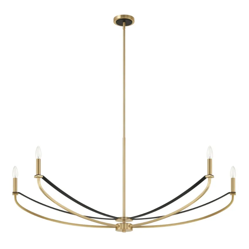 Le lustre linéaire Sussex redéfinit le raffinement par son jeu de textures et ses proportions équilibrées. Des sangles en faux cuir noir tombent avec élégance depuis une structure en or champagne, chacune rehaussée de fines coutures évoquant un savoir-faire couture. Un discret accent de cuir à la rosace vient compléter l’ensemble, créant une pièce signature qui s’intègre aussi bien dans des décors rustiques que contemporains urbains.