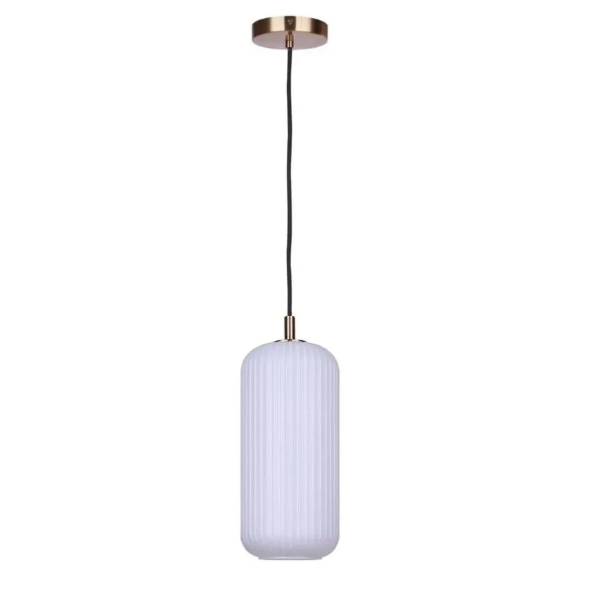 The MALEK 1-light cord pendant in gold finish blends understated elegance with practical versatility, making it ideal for kitchens, dining areas, or even flanking a bathroom mirror. Its ribbed opal glass shade diffuses light gently, creating a warm and inviting glow without overpowering the space. Adjustable from 16 to 63 inches, the corded design accommodates a variety of ceiling heights and layouts. Damp-rated for safe use near moisture-prone areas, MALEK delivers builder-grade reliability with a subtle, contemporary style. Compact yet refined, it offers a quietly elevated presence for both new builds and renovation projects.