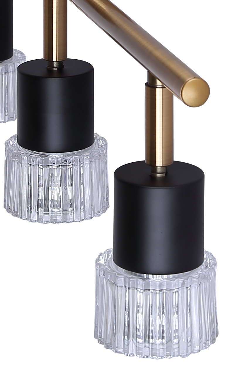 Bring a touch of transitional inspiration to your home with the Owen LED track lighting, featuring elegant clear ribbed glass shades and faux wood accents. Its modern finish and adjustable design ensure ideal light placement, making it a perfect fit for a mid-century modern aesthetic. Owen enhances your space with its elegant and versatile charm.