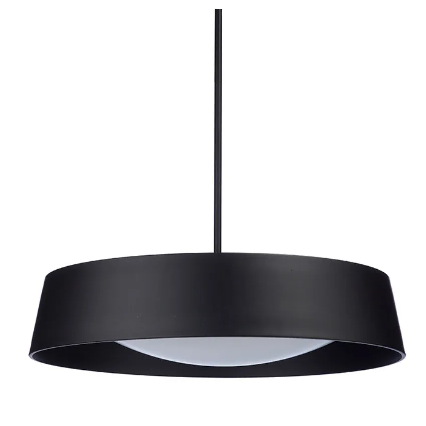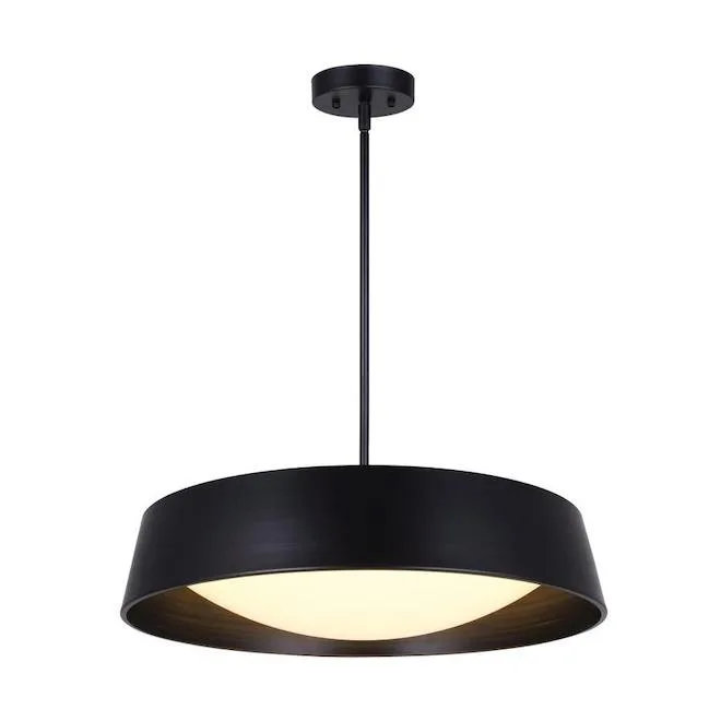 The Adira pendant combines a sleek, contemporary design with exceptional energy efficiency. It features a matte black metal ring and a white acrylic diffuser that provides a warm, diffused light. The integrated 42 W LED delivers approximately 1,700 lumens (3000 K) and is compatible with a dimmer.