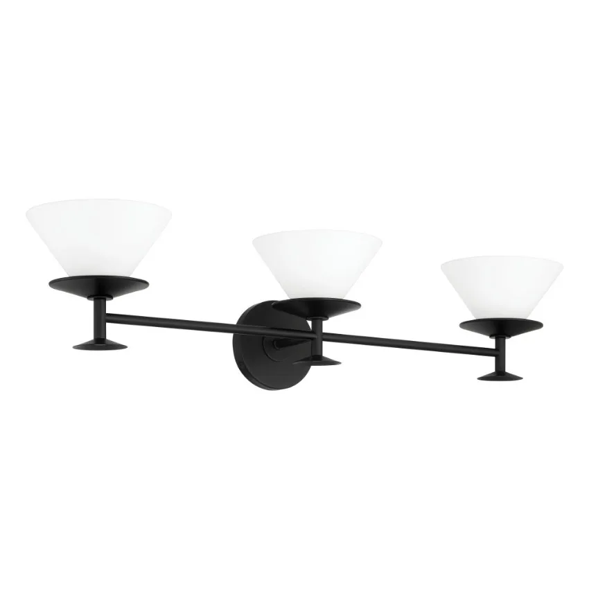 Le luminaire de salle de bain Tremolo revisite avec finesse l’inspiration mi-siècle, caractérisé par sa géométrie épurée et ses abat-jours coniques légèrement évasés en verre opale gravé. Sa finition noir mat, rehaussée d’accents or champagne, met en valeur chaque abat-jour logé dans une coupelle inclinée et accompagné de disques métalliques interchangeables pour un look personnalisé. Tremolo incarne l’essence d’un style moderne luxueux, alliant une forme audacieuse à une chaleur raffinée pour une présence intemporelle dans tout espace.