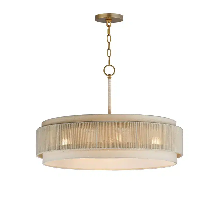 The Seacliff collection blends coastal charm with transitional elegance. Its centerpiece features twisted cotton strands, filtering light beautifully while adding texture and visual interest. Above and below the band of cotton twine, an Off-White linen shade softens the glow for a warm, inviting ambiance. The supporting rod is wrapped in matching rope-like material, accented with Natural Aged Brass metal details that elevate the design. Perfect for adding a refined, neutral touch to any space.