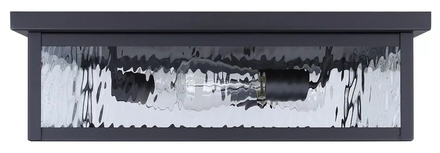 Son fini noir mat contemporain s’harmonise parfaitement avec le charme rustique de son verre texturé (watermark), créant un équilibre visuel à la fois chaleureux et actuel. La lumière se diffuse doucement à travers le verre, offrant un éclairage agréable et accueillant. Compatible avec des ampoules de type A de 60 W (non incluses), il assure une luminosité optimale.