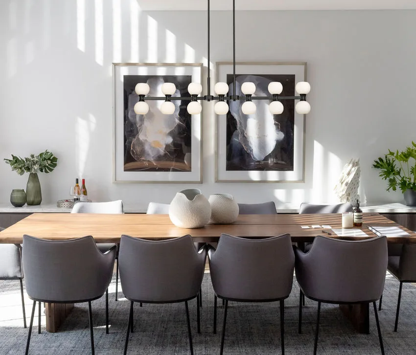 L’esprit Mid-Century Modern est très tendance dans les décors intérieurs actuels, et ce luminaire d’îlot à 14 lumières de la collection Artemis en offre une interprétation élégante avec une touche rétro et une pointe de charme nautique. Parfait pour rehausser une cuisine transitionnelle ou un espace de réception, ce luminaire présente une structure linéaire élégante en acier au fini noir mat. Des éléments concaves mettent en valeur des abat-jour ronds en verre opale mat, positionnés pour diffuser la lumière vers le haut et vers le bas, créant ainsi un éclairage ambiant chaleureux et équilibré.
