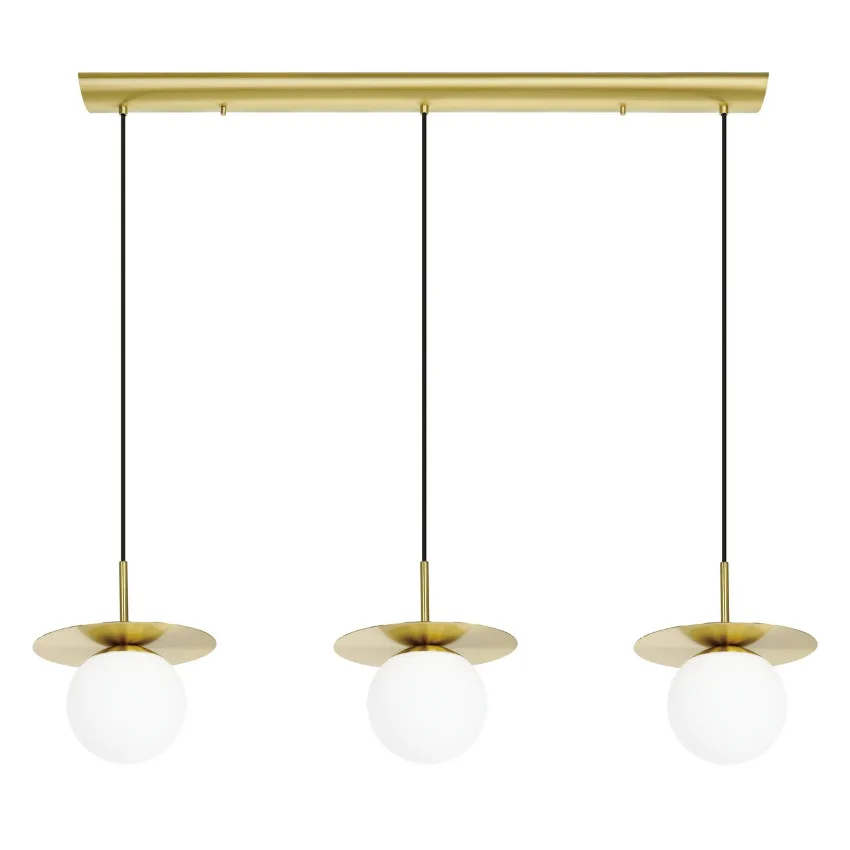 La suspension linéaire Arenales à 3 lumières (Modèle 39953A) de EGLO Canada est un luminaire suspendu moderne au profil allongé qui marie une finition laiton brossé à des abat-jours en verre opale blanc pour un style transitionnel raffiné. Cette suspension est équipée de trois douilles à culot moyen (E26) pour un éclairage polyvalent (ampoules non incluses), idéale au-dessus d’un îlot de cuisine, d’une table à manger ou dans un espace de vie ouvert. Sa silhouette élégante et ses matériaux de qualité apportent une lumière d’ambiance stylée à tout intérieur contemporain.