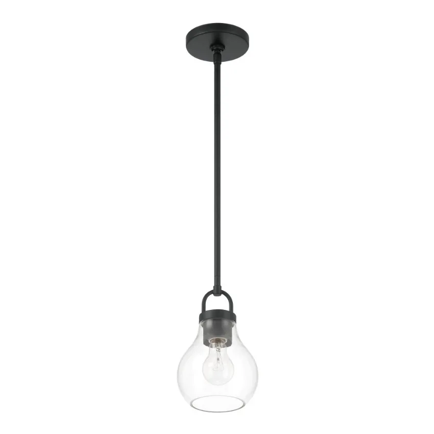 Le luminaire suspendu Mansfield incarne un raffinement moderne avec une polyvalence intemporelle. Son abat-jour en verre clair légèrement évasé est suspendu avec élégance à une structure noir mat, rehaussée de la boucle décorative surdimensionnée signature de la collection. Sa silhouette épurée et son élégance discrète en font un choix idéal pour une variété d’intérieurs, des décors contemporains épurés aux ambiances chaleureuses d’inspiration farmhouse.