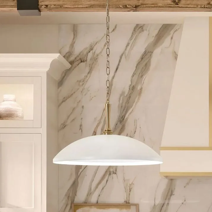 Designed to illuminate in style, the Delarosa pendant stands out with its luxuriously oversized scale and bold presence. Its large shade creates a striking visual impact, making it ideal for open spaces and statement areas.