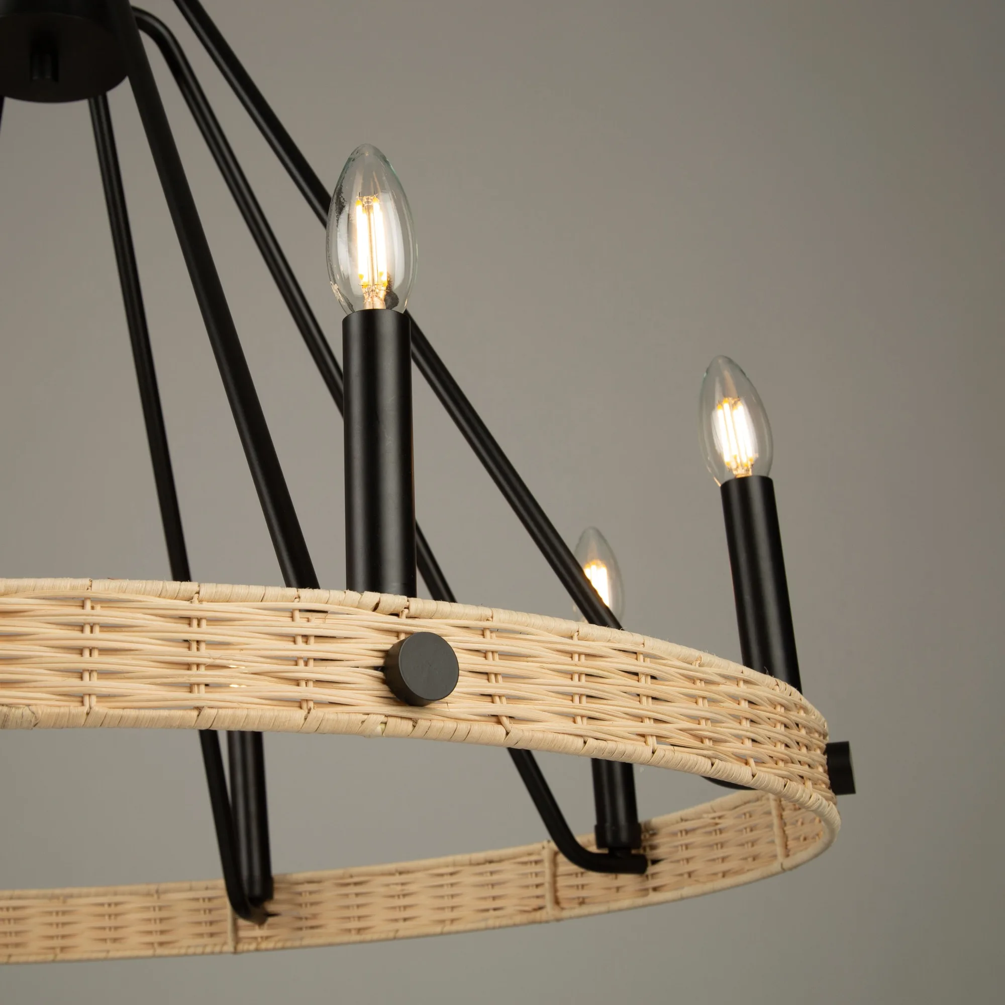 CHANDELIER NOIR ET ROTIN – PERRIS AC11718BK