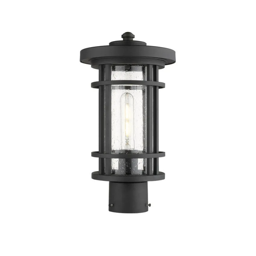 Un verre clair granuleux au charme romantique apporte un effet texturé à l’abat-jour cylindrique de cette lanterne sur poteau extérieure. Son fini noir audacieux et son design décoratif s’harmonisent parfaitement avec les allées extérieures et les espaces de jardin.