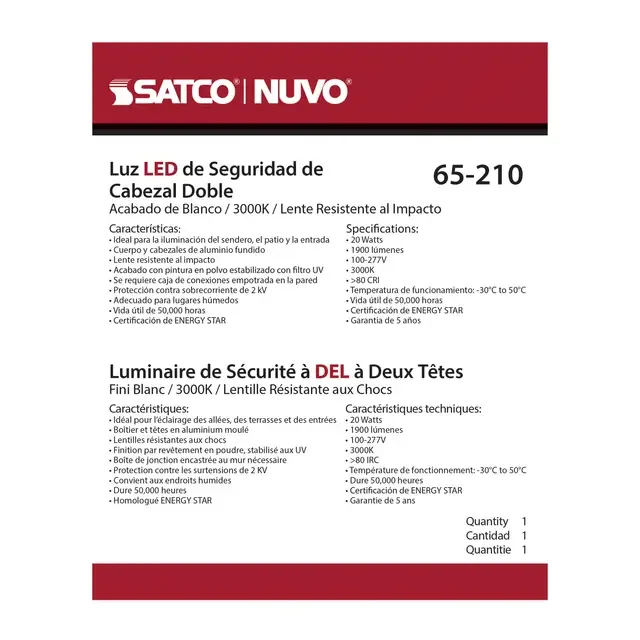 Ce luminaire de sécurité DEL à double tête offre un éclairage puissant et directionnel pour protéger efficacement les espaces extérieurs. Ses deux têtes orientables permettent de diriger la lumière précisément là où elle est nécessaire. Son fini blanc s’intègre facilement à tout type de façade. Idéal pour les entrées, garages, cours, allées et zones de passage, il combine sécurité, efficacité et tranquillité d’esprit.