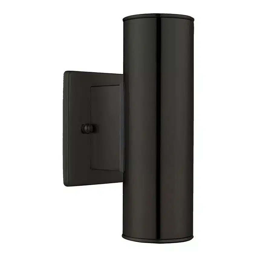 Applique extérieure RIGA au design cylindrique haut/bas en acier galvanisé fini noir, idéale pour façades, entrées et terrasses.