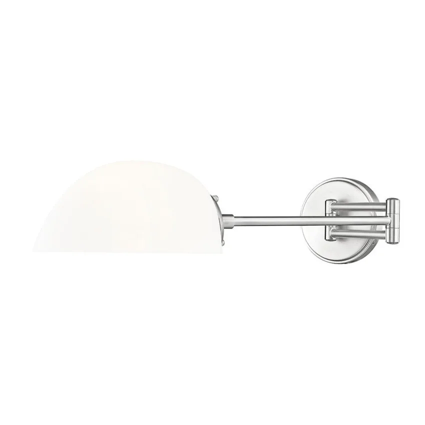 Avec son charme rétro, cette applique murale à une lumière mise sur un design simple et efficace, composé d’une structure en acier au fini nickel brossé. Son abat-jour en verre opalin, orientable, permet d’ajuster facilement l’éclairage selon vos besoins.