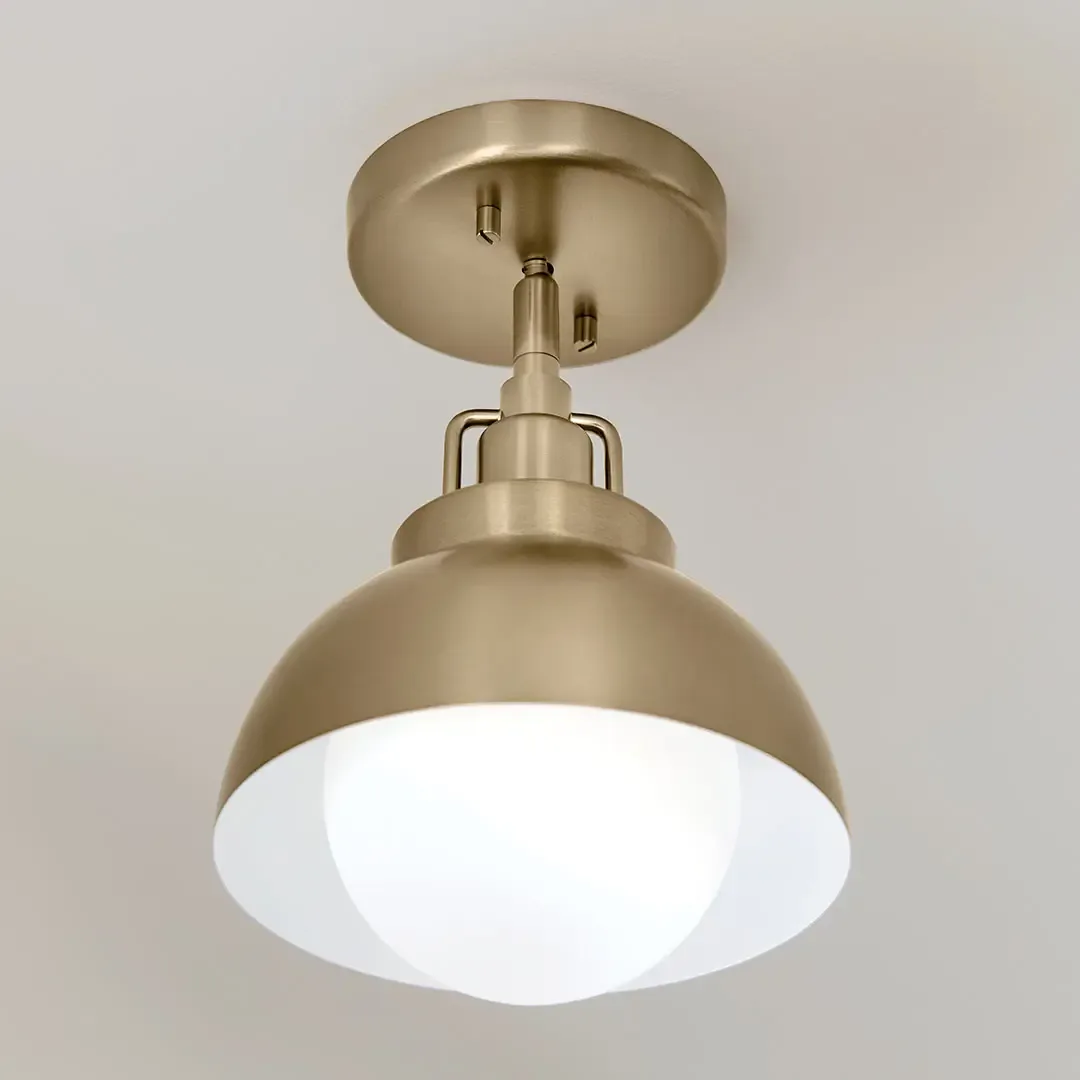Le luminaire Niva à 1 lumière, convertible en plafonnier semi-affleurant, est aussi polyvalent qu’élégant. Il est offert à l’origine comme applique murale, avec la quincaillerie nécessaire pour le convertir en semi-plafonnier. Il peut également être transformé en suspension avec l’achat de tiges d’accessoires optionnelles. Offert dans un fini bronze champagne avec un verre opalin satiné gravé, le modèle Niva s’harmonise facilement avec d’autres éléments de style moderne.