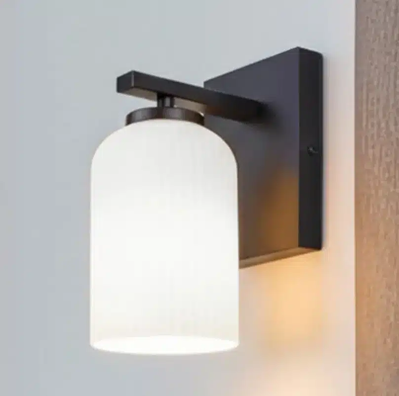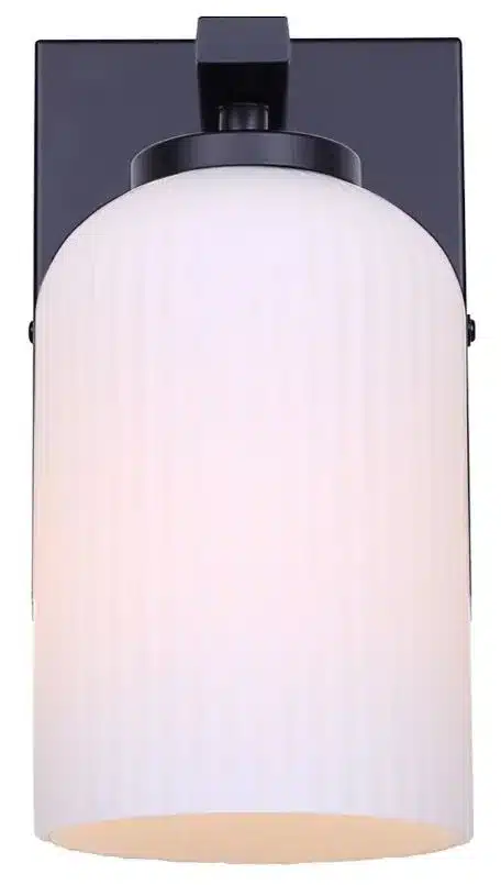 L’applique de salle de bain BRAM à 1 lumière, en fini noir mat, offre un raffinement moderne dans un format compact. Son abat-jour en verre opalin plat nervuré diffuse une lumière douce et uniforme, idéale pour les petites salles de bain, salles d’eau ou comme éclairage d’appoint de chaque côté d’un miroir.
