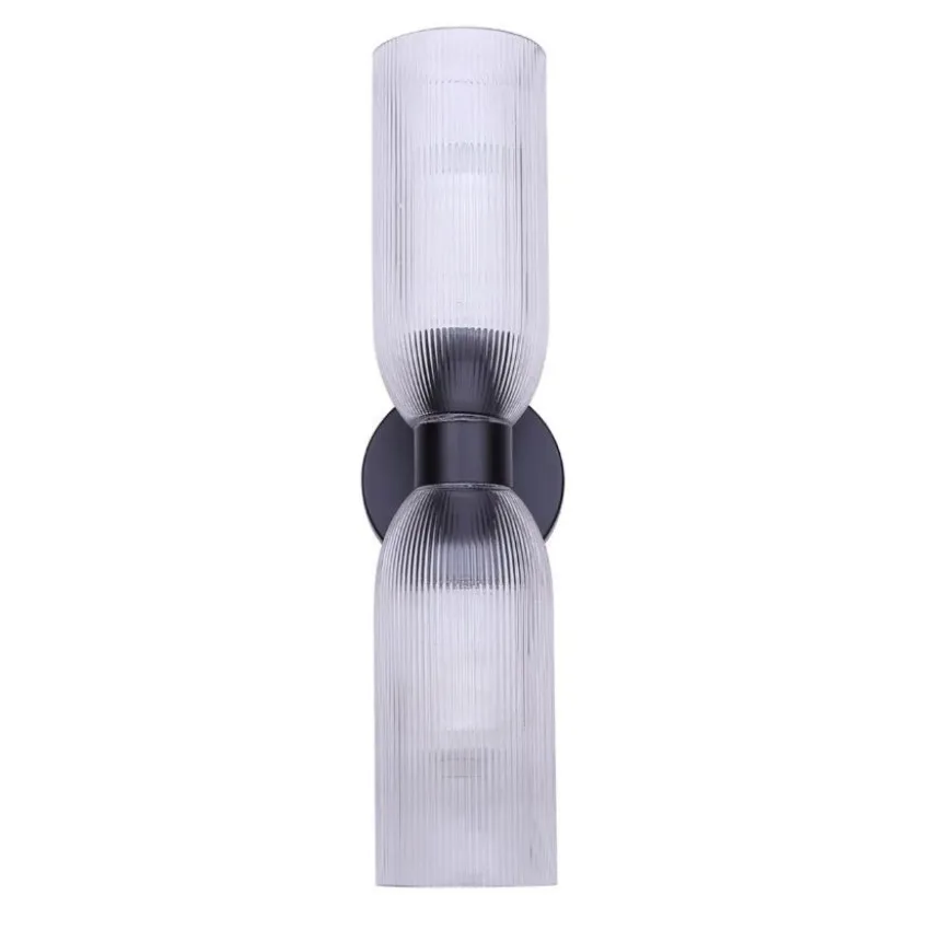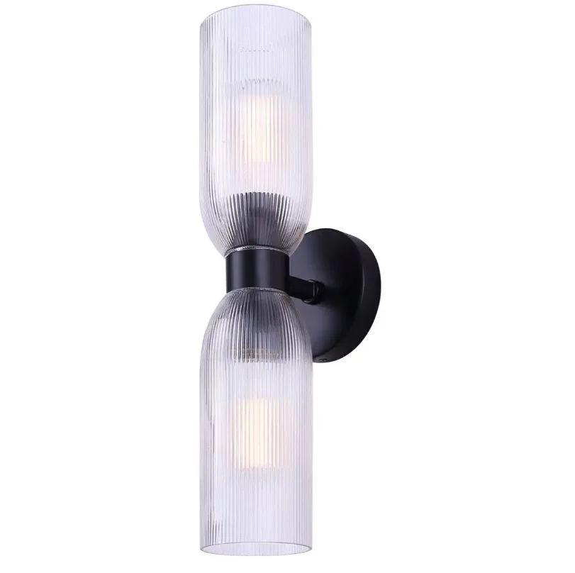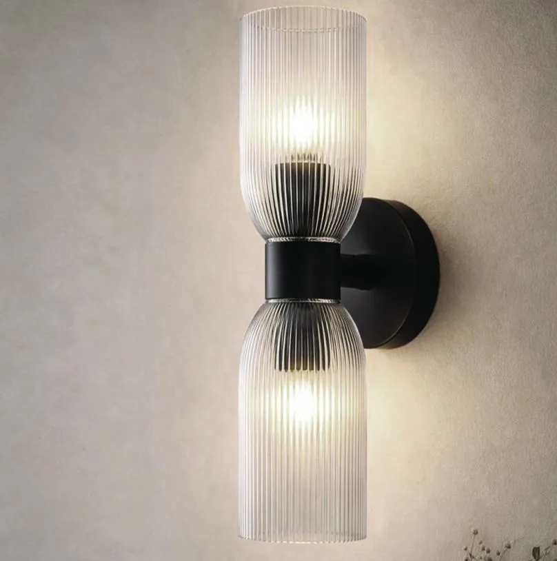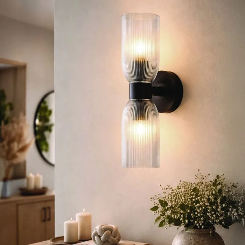 Le luminaire mural OMARION à 2 lumières en fini noir mat apporte une touche contemporaine audacieuse tout en conservant une élégance discrète et raffinée. Son fini mat profond crée un contraste saisissant avec ses abat-jours en verre clair côtelé, qui diffusent la lumière en une lueur chaleureuse et accueillante.