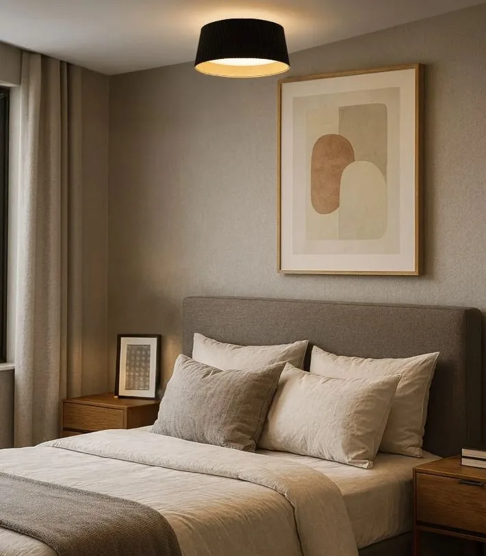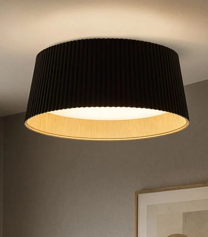 Le plafonnier DEL MIRA de 17,75 pouces marie design contemporain moderne et détails inspirés de la nature, offrant une présence à la fois remarquable et apaisante. Son abat-jour en métal noir mat côtelé est rehaussé d’un intérieur effet bois obtenu par procédé hydrographique, évoquant des textures naturelles tout en diffusant une lumière chaleureuse et accueillante.