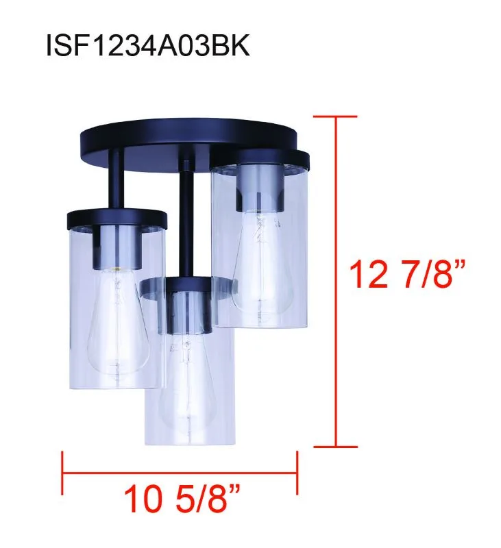Apportez une touche de sophistication moderne à votre plafond avec le semi-plafonnier Britton à 3 lumières en fini noir mat. Conçu pour allier style et fonctionnalité, ce luminaire compact est doté de trois abat-jours cylindriques en verre clair, mis en valeur par une finition noire audacieuse qui s’intègre parfaitement aux décors modernes et transitionnels.
