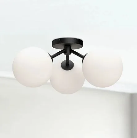 Les formes du milieu du siècle rencontrent une touche bohème moderne dans la collection Cassia. Avec ses silhouettes de style Sputnik animées par des globes en verre opalin mat ou clair, cette collection marie élégance et caractère avec justesse. Offerte en deux finis pour s’adapter à l’ambiance de votre espace : noir mat ou or vieilli.