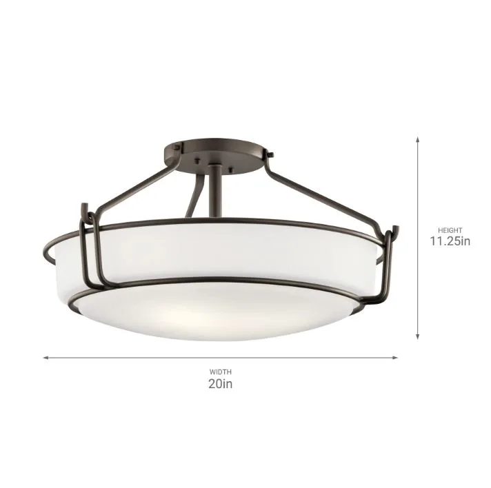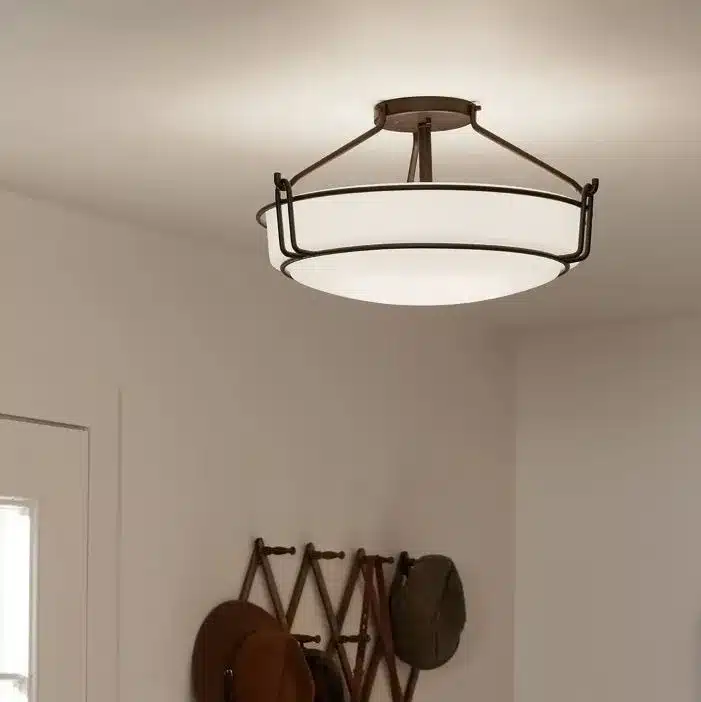 Un design simple et épuré fait du luminaire semi-encastré à 4 lumières de la collection Alkire, dans la finition Bronze vieilli, un classique moderne. Le style semi-encastré procure une généreuse diffusion lumineuse, tandis que le travail de métal au motif « crochet et œillet » ajoute un intérêt visuel au plafond.