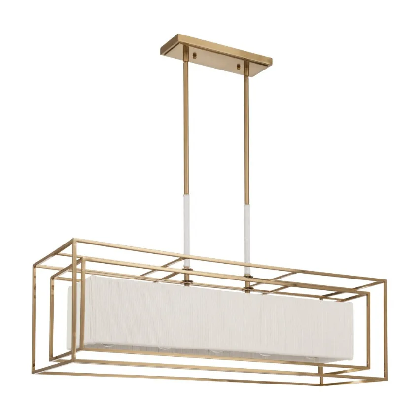 Une belle étude de contrastes et d’harmonie, le lustre linéaire Abbey marie des textures naturelles douces à des lignes géométriques épurées. Son cordon en coton crème, enroulé à la main, apporte chaleur et profondeur à une structure linéaire en laiton brossé à cinq lumières, créant un équilibre à la fois raffiné et accessible.