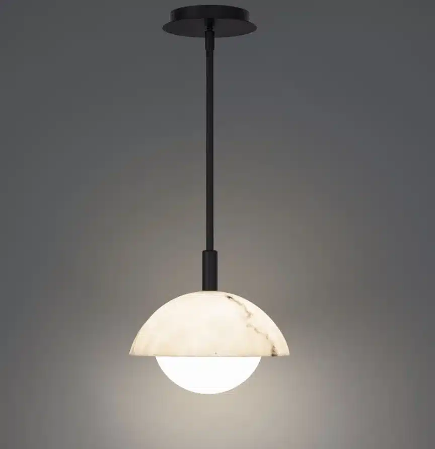 Mystérieuse comme la lune, la suspension Moonstone séduit par son éclat doux et enveloppant. Son verre opalin diffuse une lumière délicate à travers un abat-jour imitation albâtre crémeux, créant une ambiance chaleureuse et raffinée.