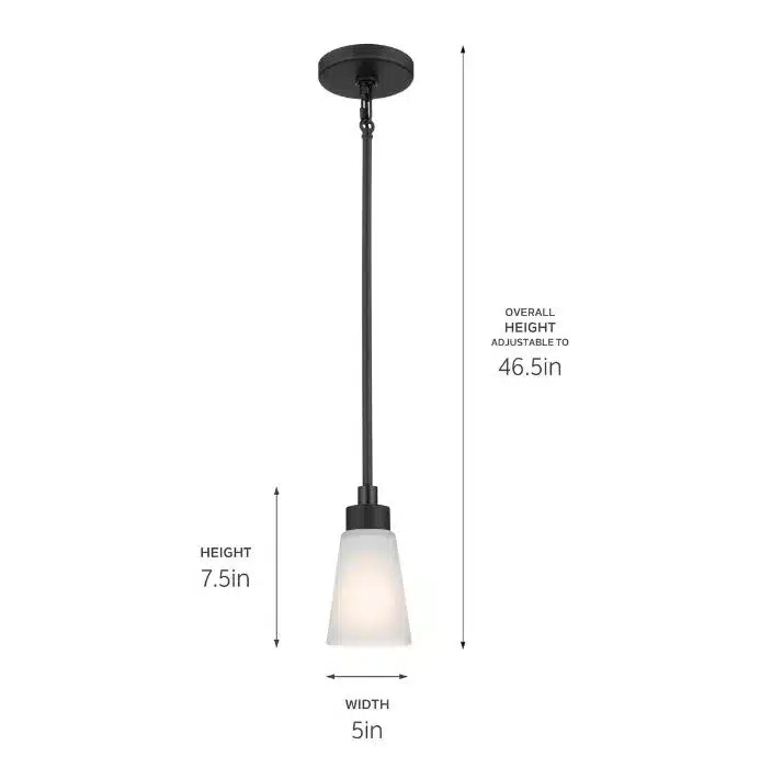 Le mini suspendu Erma 4 po à 1 lumière se distingue par sa grande polyvalence. Installez-le à la hauteur désirée, jusqu’à un maximum de 80 pouces, pour créer l’effet recherché. Son magnifique abat-jour en verre satiné gravé apporte une touche de sophistication épurée à tout décor, tandis que sa finition noire évoque une élégance intemporelle.