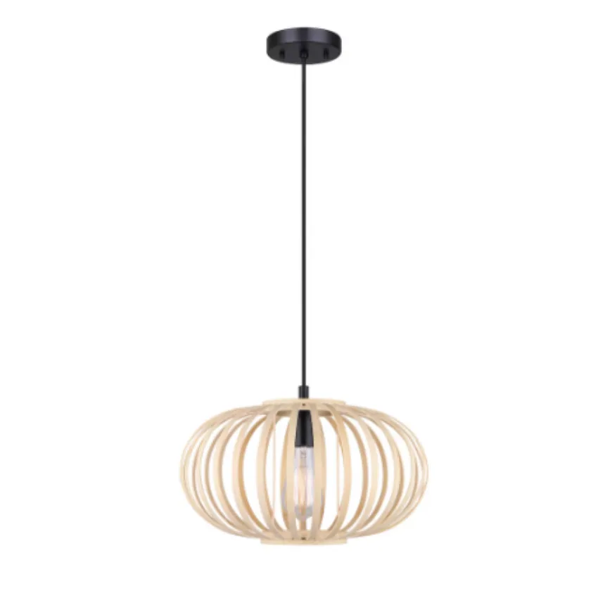 La suspension Anorah incarne la tendance en matière d’éclairage. Elle est rehaussée d’un fini noir mat discret qui ne détourne pas l’attention de l’abat-jour en bambou parfaitement sculpté. Les fentes délicates offrent juste ce qu’il faut d’éclairage pour votre intérieur — que ce soit au-dessus d’un îlot de cuisine, dans un coin déjeuner ou au-dessus d’une table à manger. La couleur du bambou peut varier légèrement avec le temps, lui conférant encore plus de caractère.