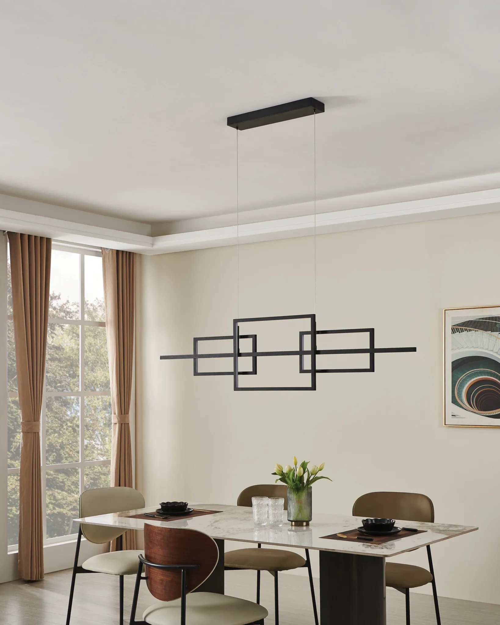 La suspension PUEBLA d’EGLO est un luminaire contemporain à LED intégrée, doté d’un profil noir suspendu à deux câbles métalliques et équipé de diffuseurs blancs. Son design géométrique minimaliste offre une lumière douce et homogène, idéale pour éclairer des espaces modernes.