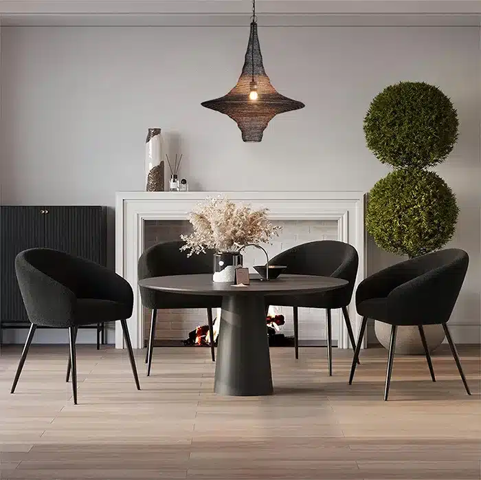 Cette suspension panier noire satinée avec fini en peinture poudre apporte une touche industrielle audacieuse grâce à sa silhouette sculpturale ajourée. Suspendue par une chaîne, elle présente un design de type panier qui permet à la lumière de se diffuser librement tout en créant un effet visuel saisissant. Fabriquée en fer, cette suspension ne nécessite aucun assemblage et est fournie avec une chaîne de 60″ pour une installation flexible. Avec ses dimensions généreuses de 24″ de diamètre par 29″ de hauteur, elle devient un élément central au-dessus d’une table à manger, d’un îlot ou dans un grand espace ouvert. Ampoule non incluse.