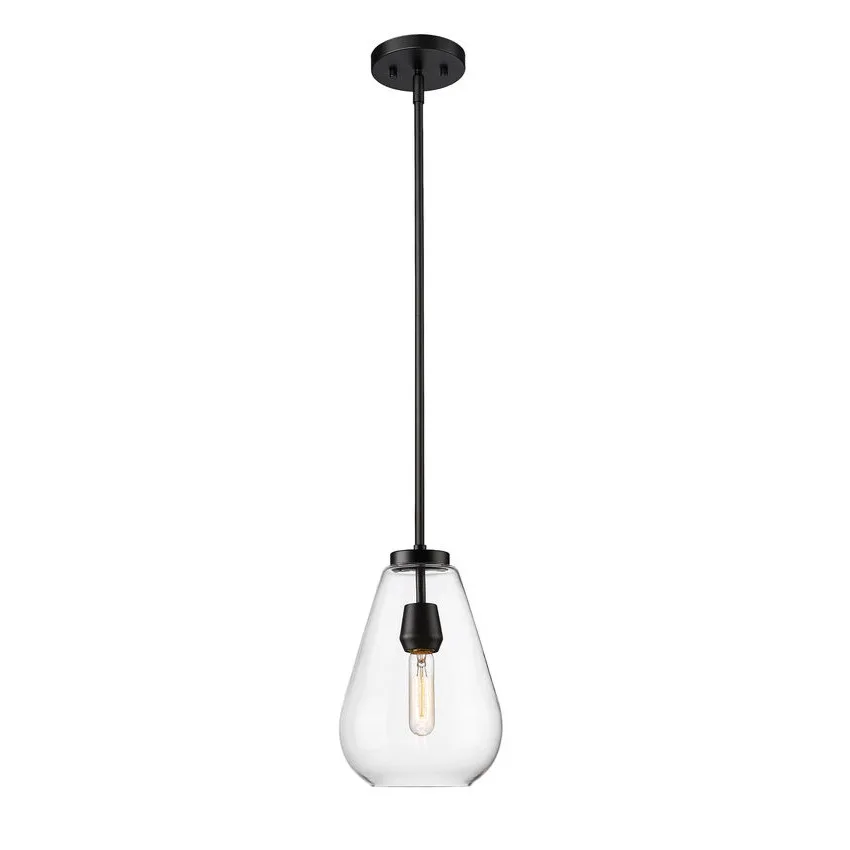 Cette suspension une lumière au style percutant incarne parfaitement l’esthétique moderne. Son abat-jour en forme de cloche effilée est fabriqué en verre clair et suspendu à une structure en acier au fini noir mat épuré. Ce luminaire apporte une touche chic et avant-gardiste à une cuisine ou une salle à manger contemporaine.